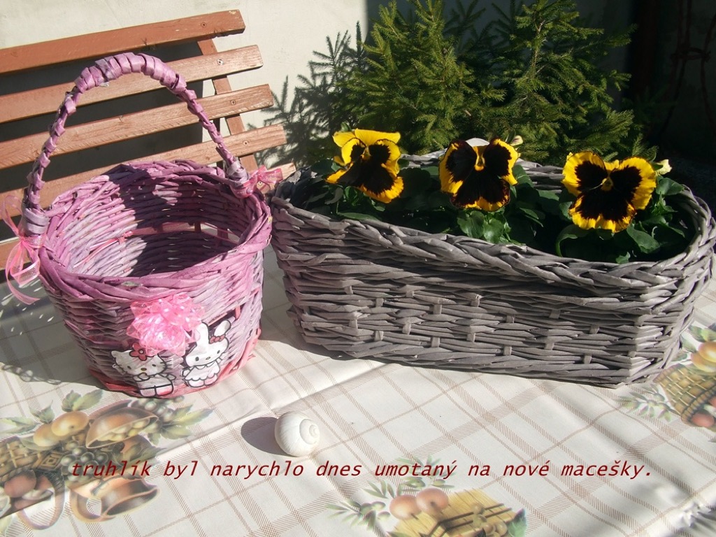 koupila jsem si pro radost krásné macešky,tak jsem jim hned umotala obal.