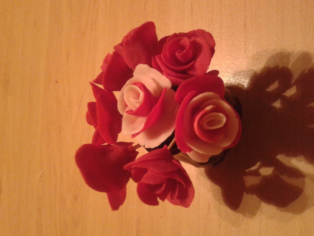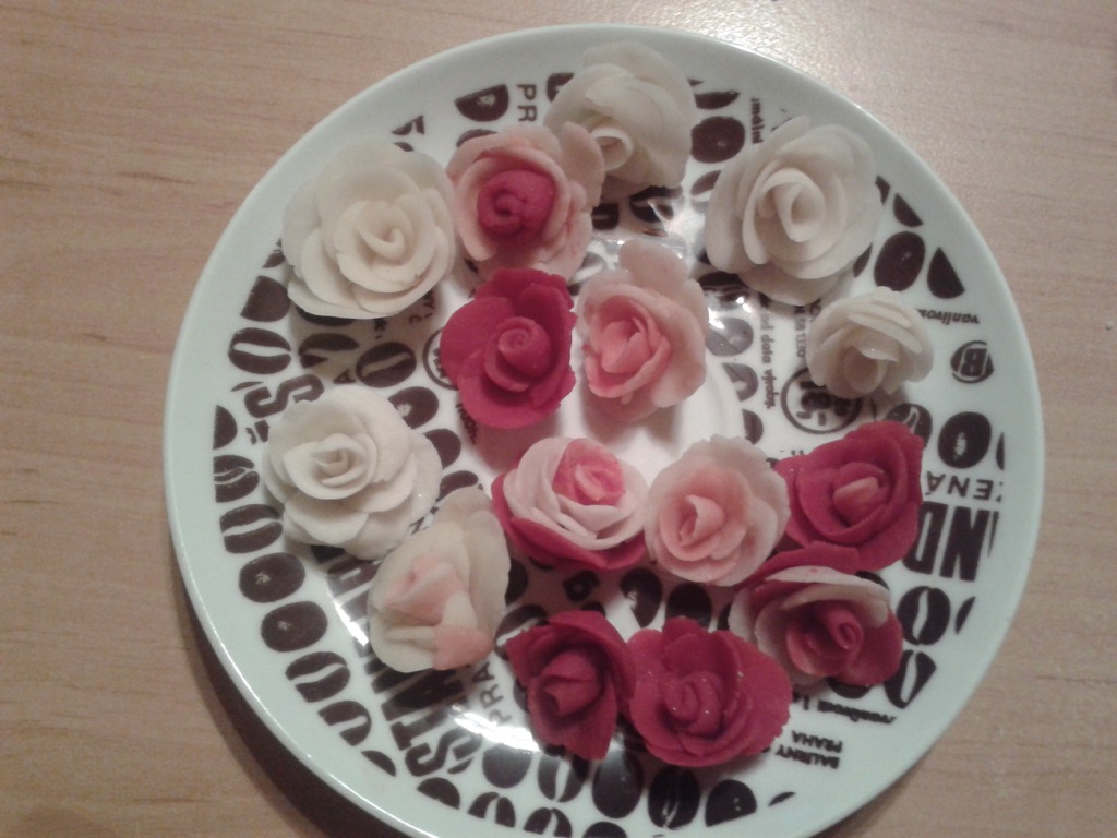 Ale nemám jaksi,co dát a psát o pěstování,žádné pěstitelské zázraky se u mě nedějí,spíš naopak.Pokojovky odchází jedna za druhou.Tak posílám alespoń kytičku růžiček,které jsem dělala ze studeného porcelánu.A také,co jsem zase umotala pro jednu zákaznici na přání.