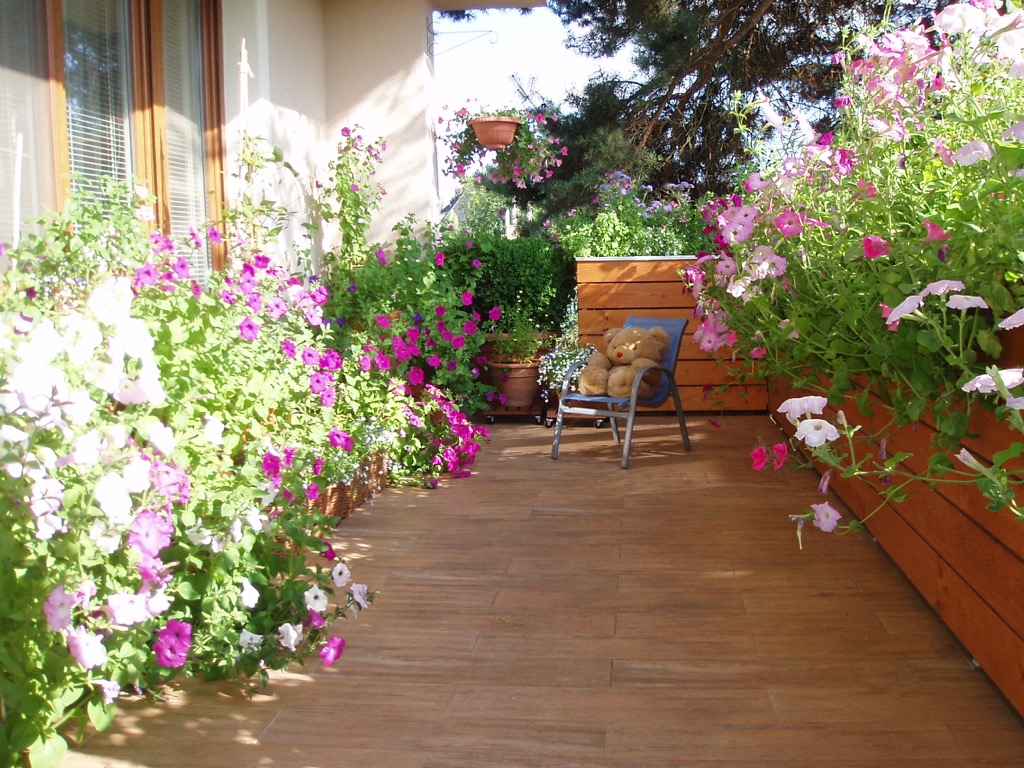 Loni jsem to trochu přehnala s petúniemi. Měla jsem doma úplnou džungli petúnii, i přestože jsem jich hodně rozdala. Na to, že jsem je sela poprvé, vyšly všechny moc krásně. Letos váhám, jestli zvolit zase mojí oblíbenou romatickou růžovo-modro-bílou kombinaci anebo jít pro změnu třeba do červené. Ta by se možná hodila lépe k té červenožluté růži pod terasou, která letos určitě vyrazí hodně nahoru po pergole.