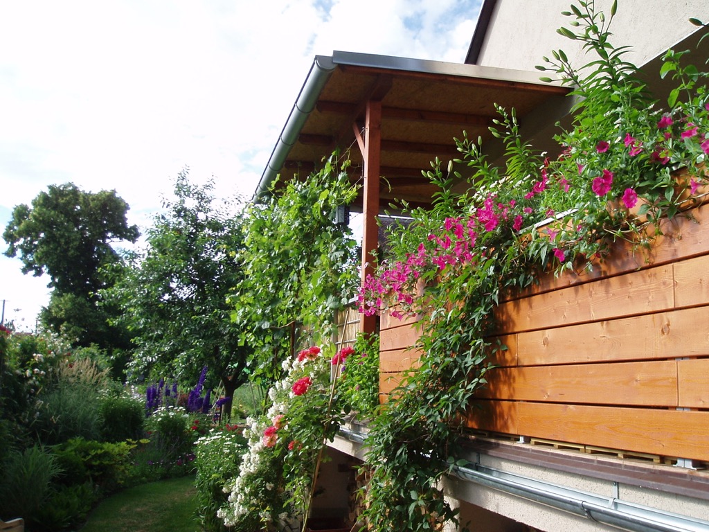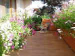Jinak můj manžel je spíš technického založení. Kytky ani zelenina mu nic neříkají. Můj koníček toleruje za podmínky, že od něj nebudu chtít na zahradě žádnou pomoc. Ale pomoc by se mi někdy na té naší velké zahradě hodila. Je ochotný akorát tak sekat trávu. Ale jinak je moc šikovný. Postavil mi tuhle krásnou terasu a ten velký dřevěný truhlík na kytky :)