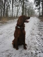 Také jsme byli v lese,tam chodím moc ráda. Honzík vrní v kočáru a obě babičky sršely spokojeností. Největší radost z lesa má Fíbinka (setr)